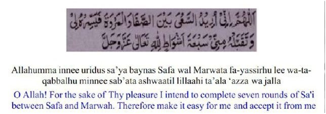 Note: There is no specific dua for Saa’ee so recite any Dua from heart between the hills of Safa and Marwah.
